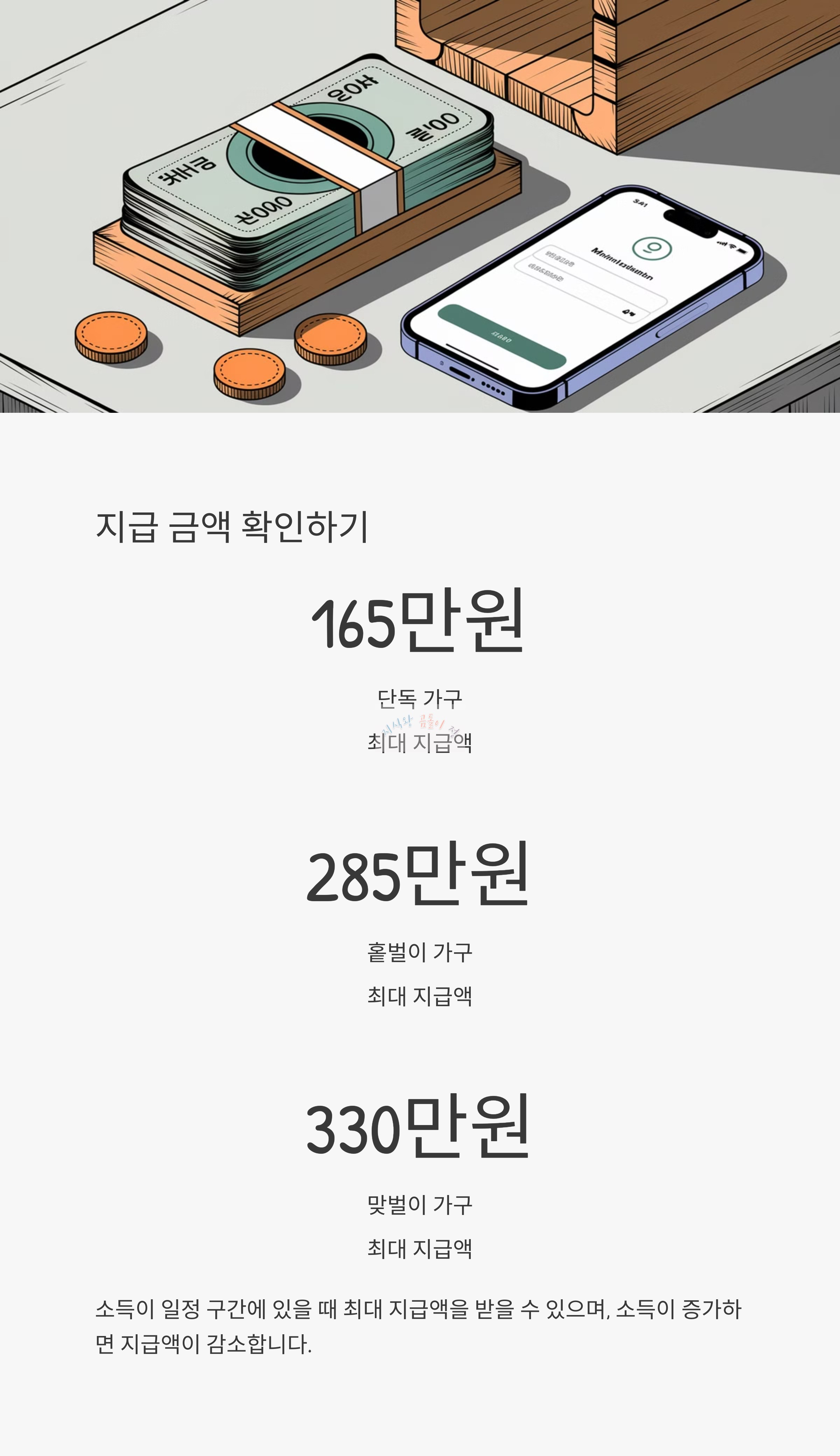 • 최대 330만 원 지급 (가구 유형별 지급액 차등 적용)