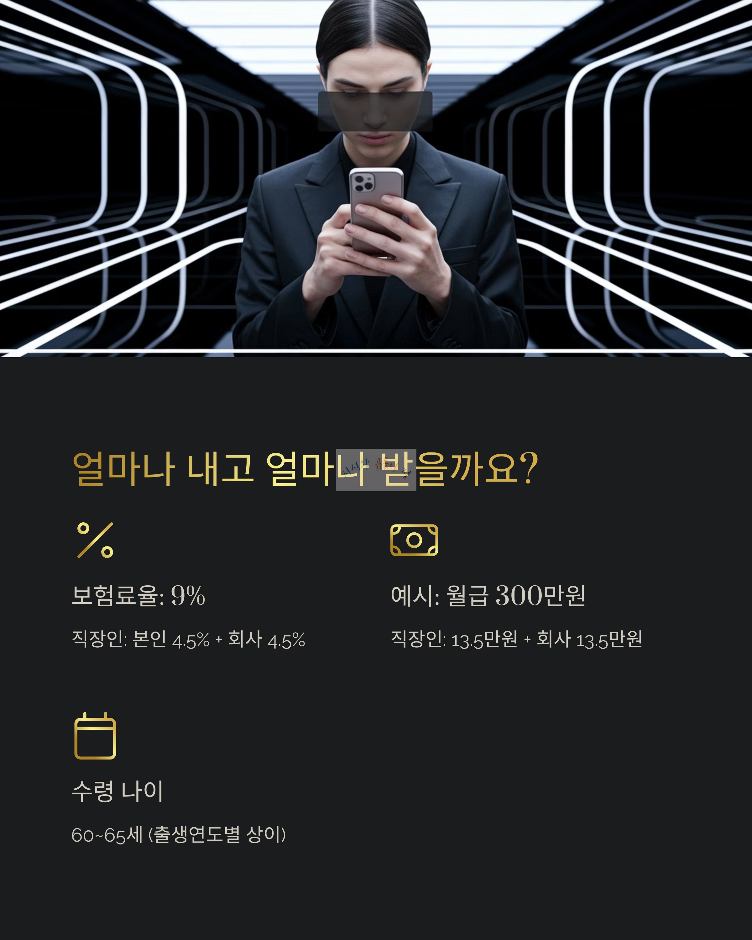 ✔️ **급여의 9%**를 납부하고, 직장인은 회사가 절반 부담!