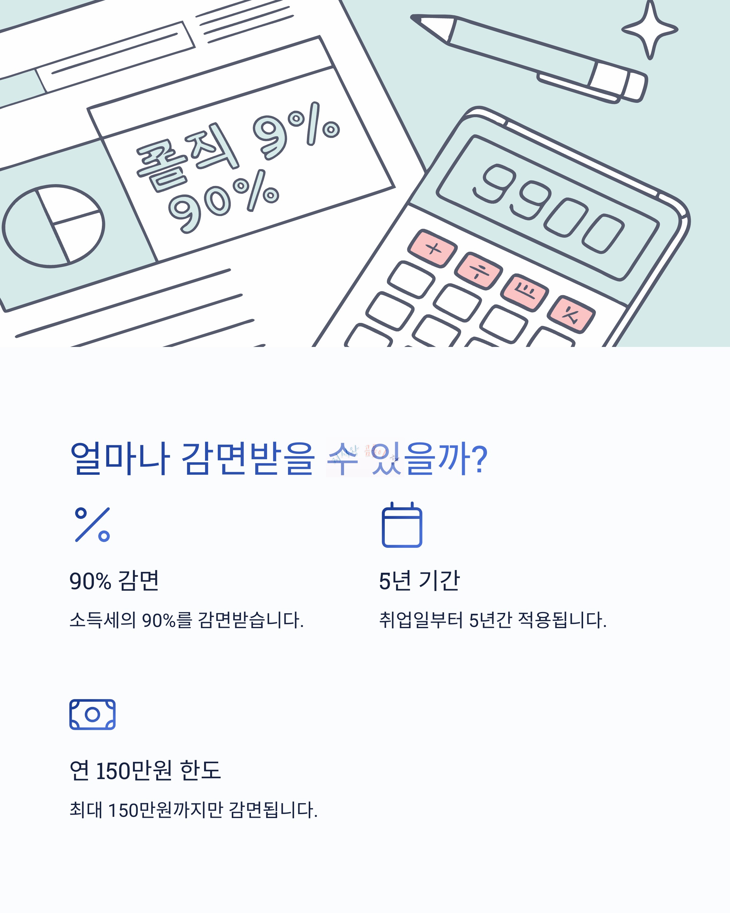 이 혜택을 받으면 취업일로부터 5년간 소득세의 90%를 감면받게 됩니다.