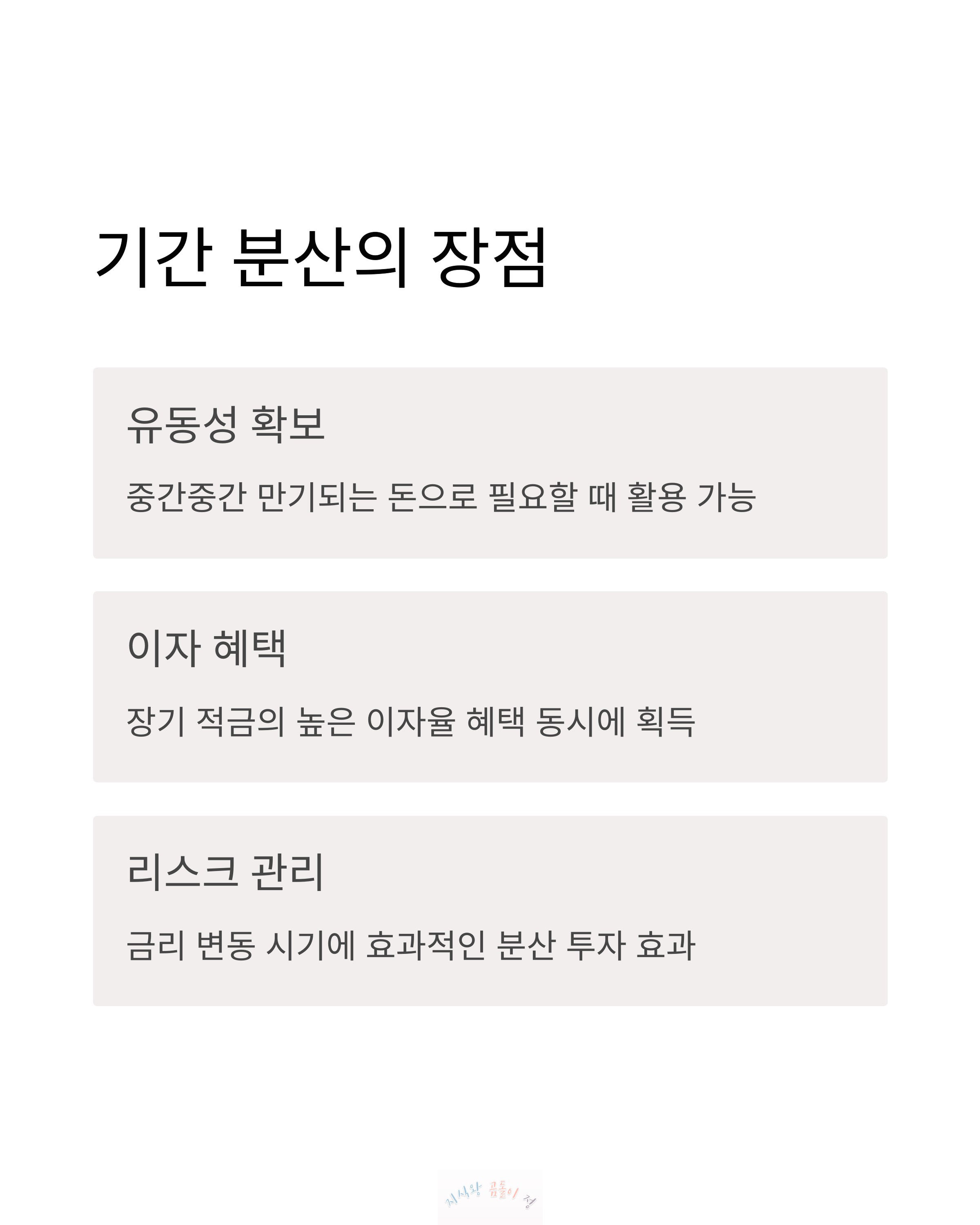 하지만 한 가지 방법보다는 기간을 분산하는 게 훨씬 안정적이더라고요.