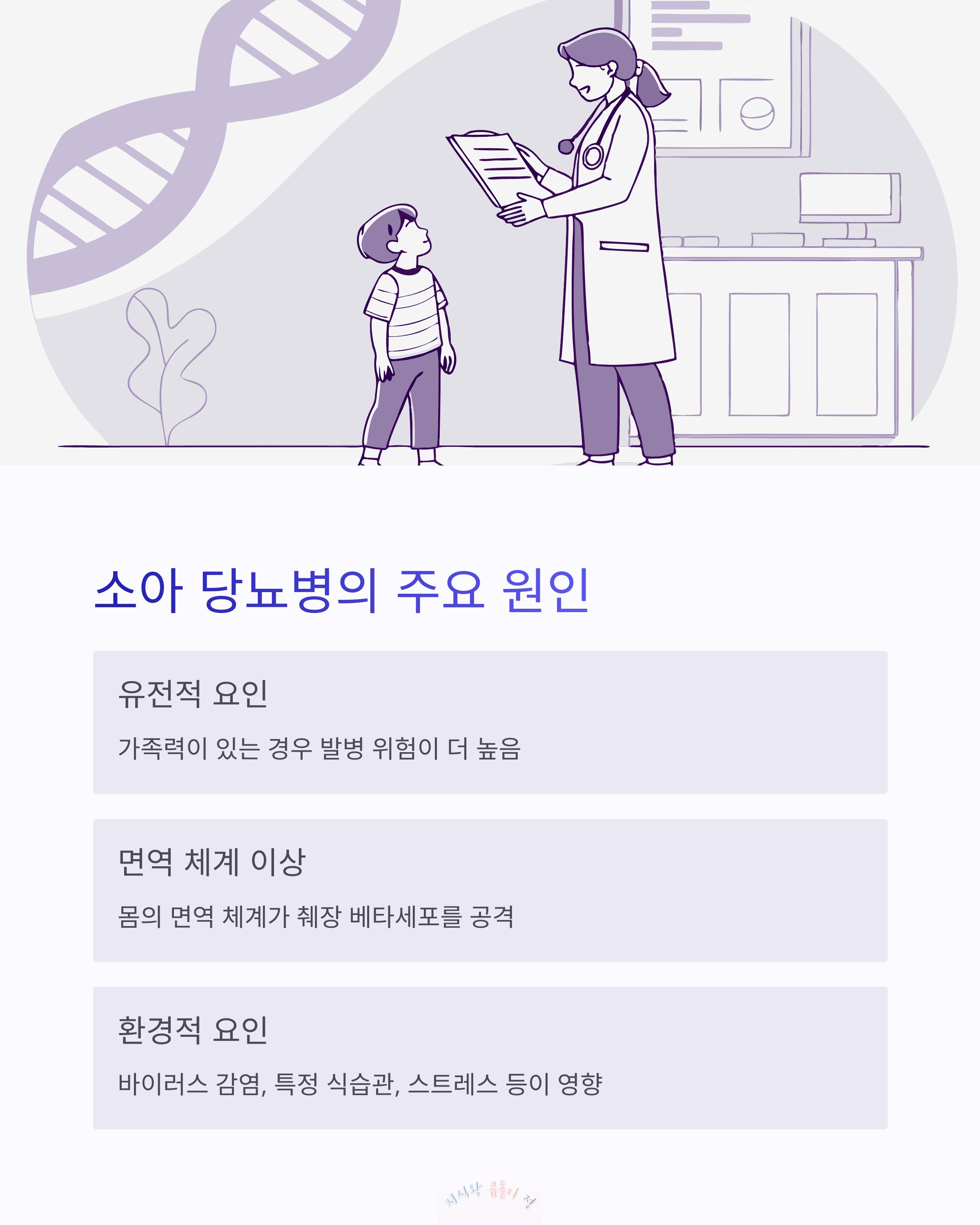 소아 당뇨병의 원인은 주로 유전적 요인과 면역 체계의 이상으로 알려져 있어요