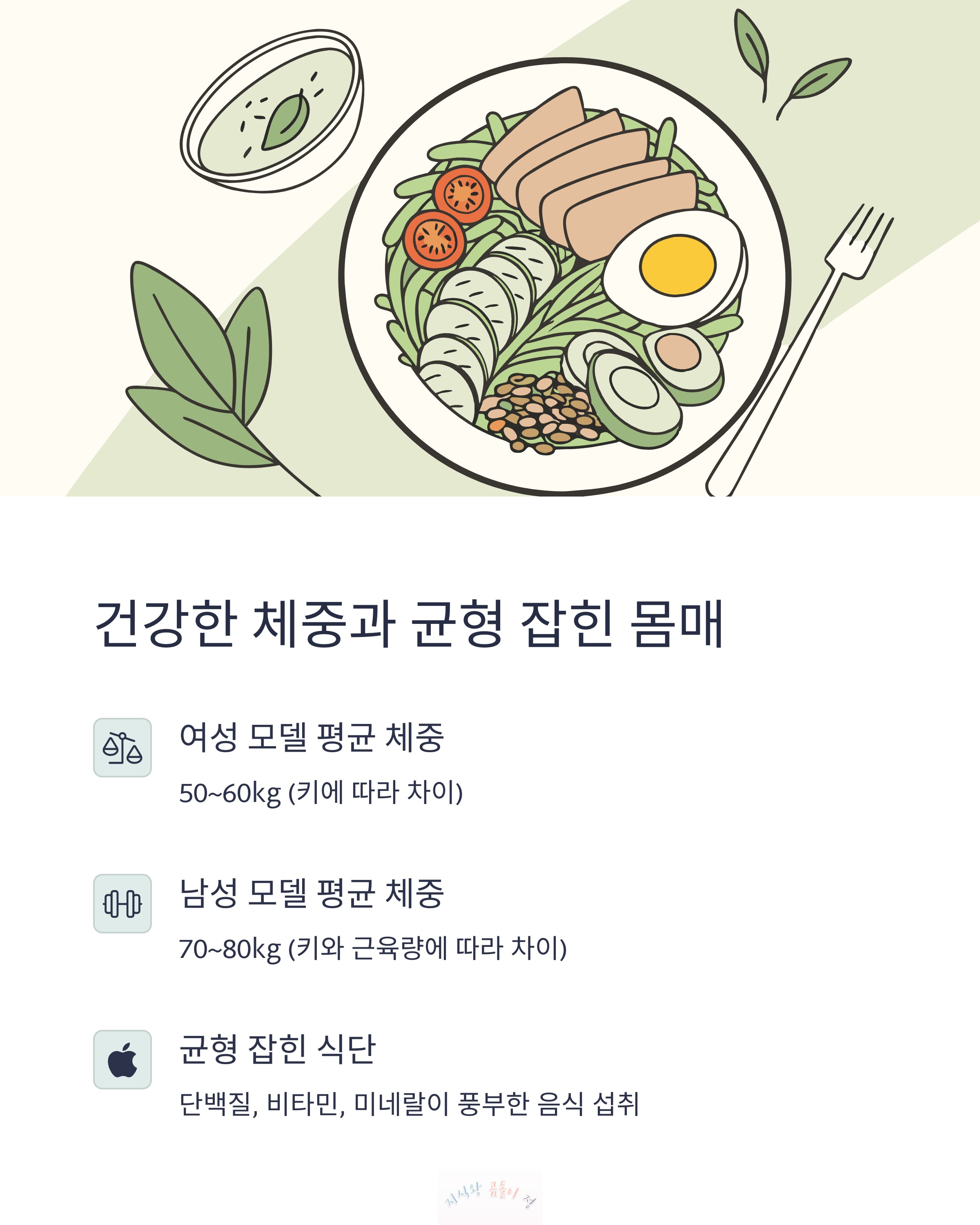 - 여성 모델 평균 체중: 50~60kg (키에 따라 차이 있음)