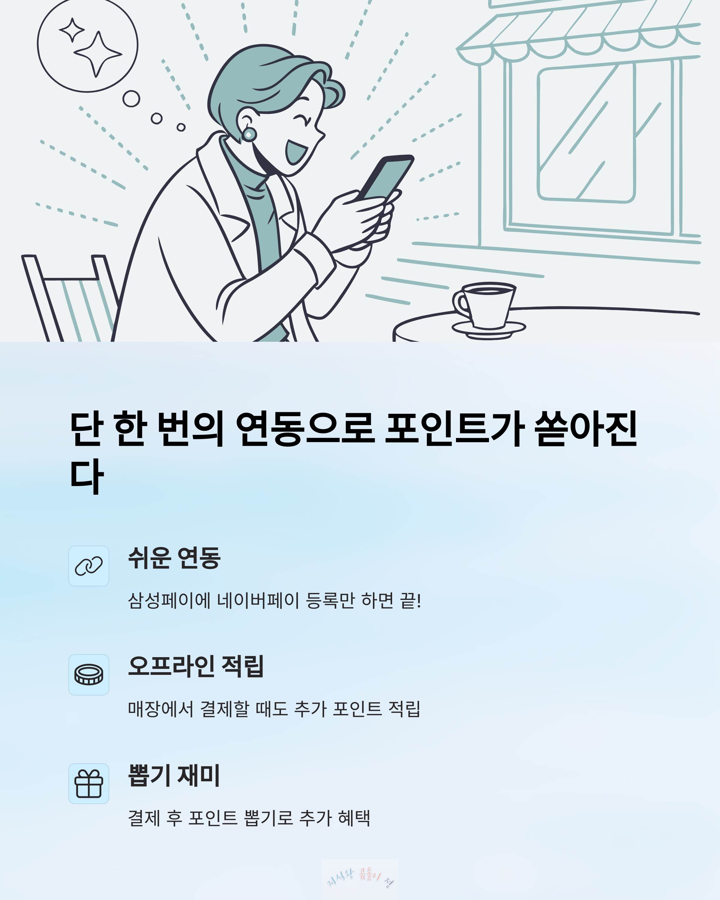 근데 네이버페이와 삼성페이 결제 연동은 좀 달랐어요. 편한데 혜택도 많고, 심지어 뽑기처럼 재밌기까지 하니까.