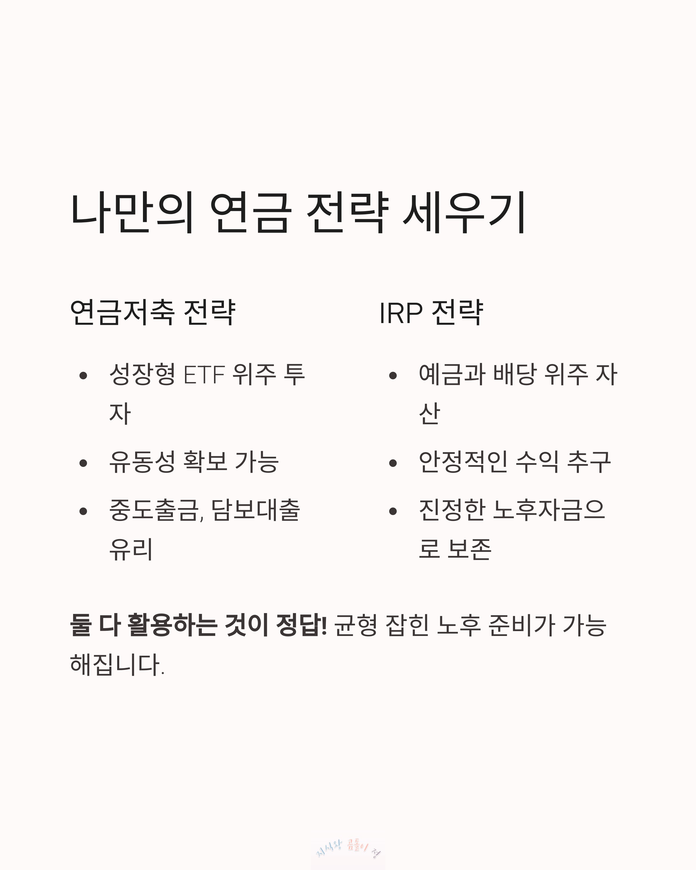 이런 식으로 전략을 나누면 균형 잡힌 노후 준비가 가능해요.