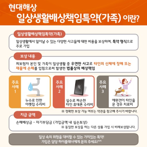 이처럼 개인의 일상적인 활동에서 발생할 수 있는 다양한 사고를 보장해 주는 만큼, 보험에 가입해 두면 예상치 못한 금전적 부담을 줄일 수 있어요.