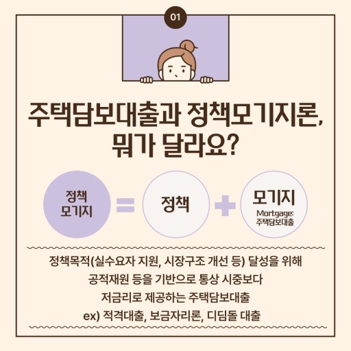 4. 정부 지원 모기지론: 저소득층 또는 무주택자를 위한 대출로, 낮은 금리와 완화된 조건이 특징입니다.