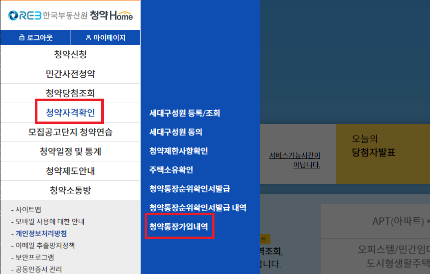 청약홈 청약 신청, 당첨 조회, 통장 가입 내역 확인