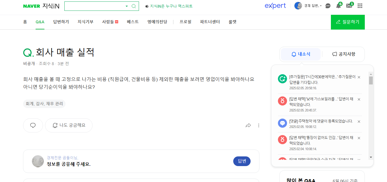1. 영업이익과 당기순이익 중 더 중요한 것은?
