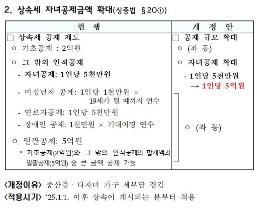 - 자녀공제: 상속인의 자녀 1인당 5천만 원.