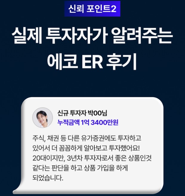 많은 투자자들이 에코ER에 대해 긍정적인 피드백을 남기고 있습니다. 몇 가지 대표적인 후기를 살펴보겠습니다.