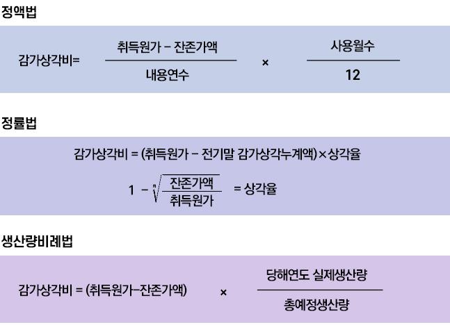 - 계산식: (취득가액 - 잔존가액) ÷ 내용연수