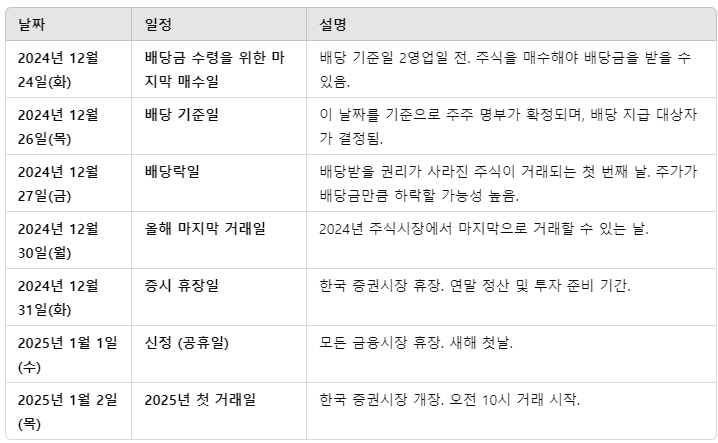 👉 단기 투자자라면 배당락일 이후 주가 하락을 고려해 매도 시점을 조정하는 것도 중요합니다.