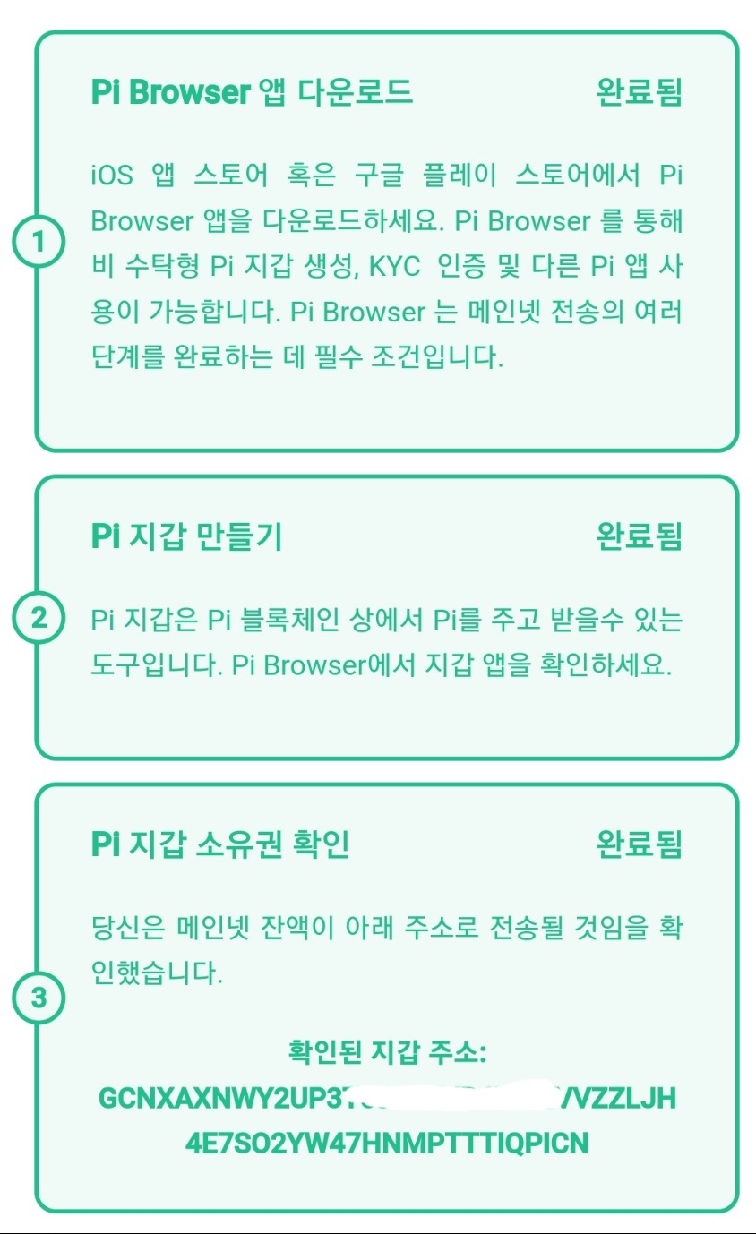 ✔️ Pi Network 앱에서 ‘설정 → 지갑 정보’를 확인하고, 메인넷 지갑 주소가 올바르게 입력되었는지 확인하세요.