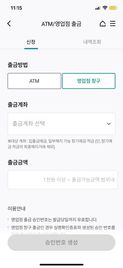 ATM에서도 출금이 가능하며, 아래 절차를 따르면 됩니다.