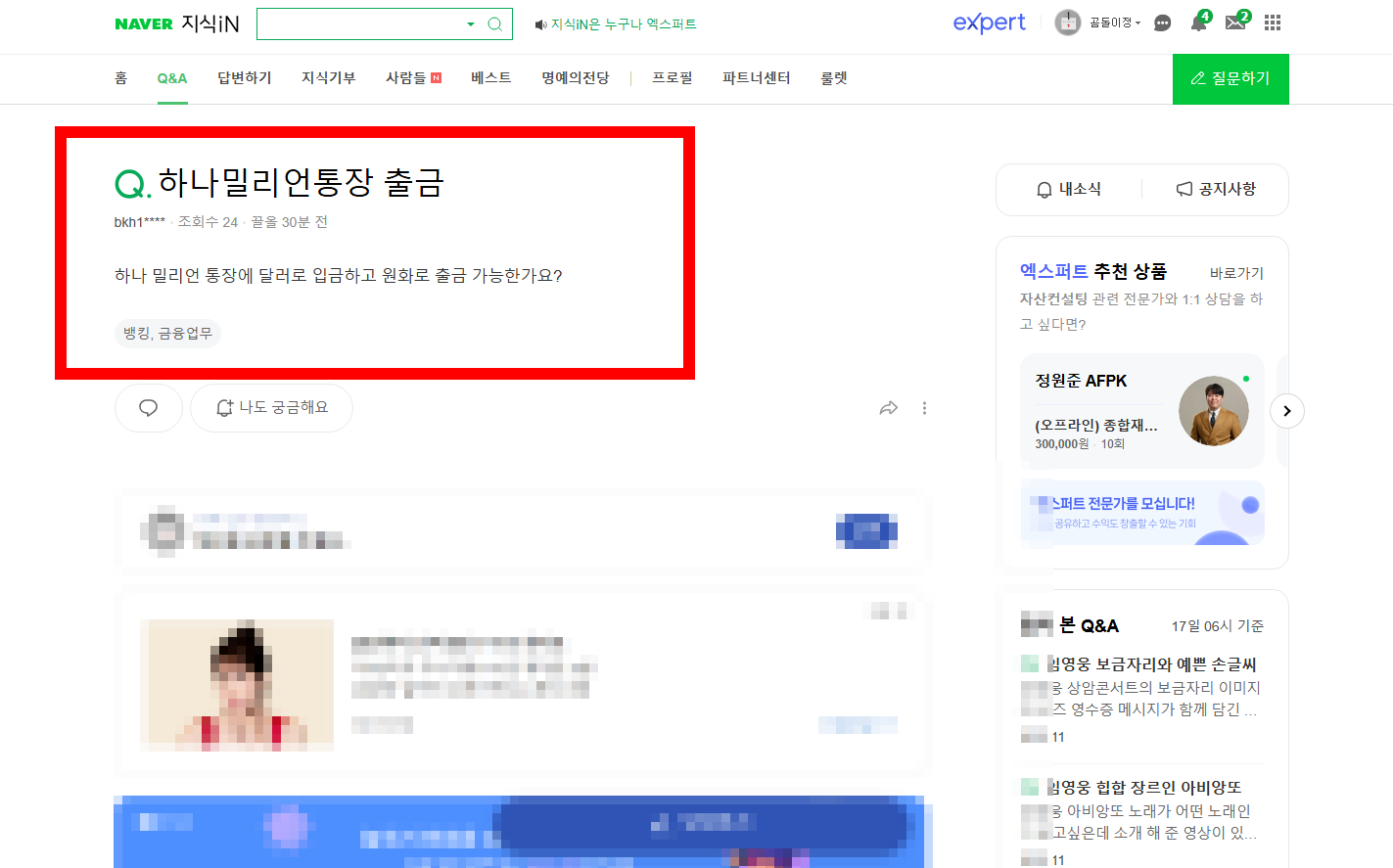 Q1. 하나 밀리언 통장에서 원화 출금 시 따로 환전해야 하나요?