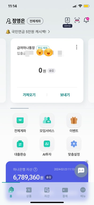 하나 밀리언 통장 출금 방법 및 사용 후기