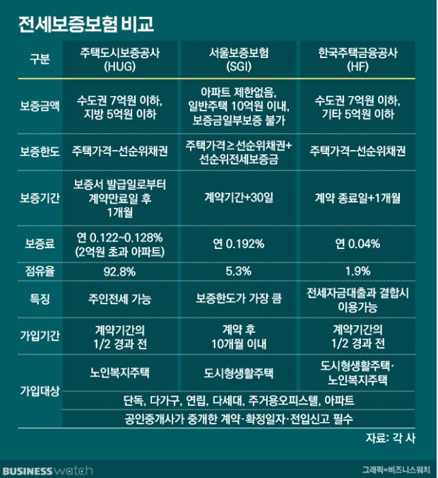 HUG 전세대출 보증보험의 주요 조건