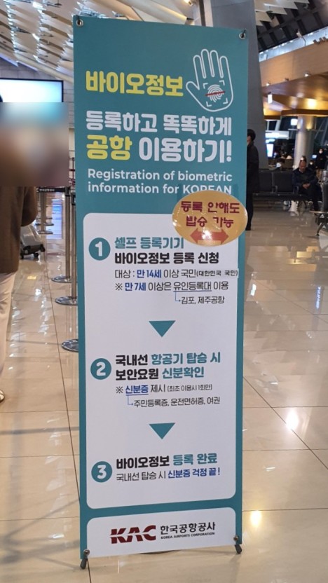 • 장소: 김포공항 국내선 3층 출발장 내 바이오등록 부스