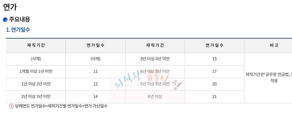 - 당겨 쓴 연가는 다음 해 연가에서 차감됨