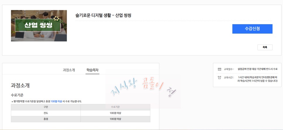 - 수강 완료 후 따로 증빙자료를 제출하지 않아도 자동 연동됨