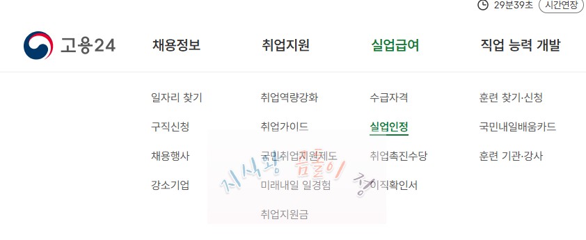 - 고용24 → 실업인정 → 실업인정 인터넷 신청 클릭
