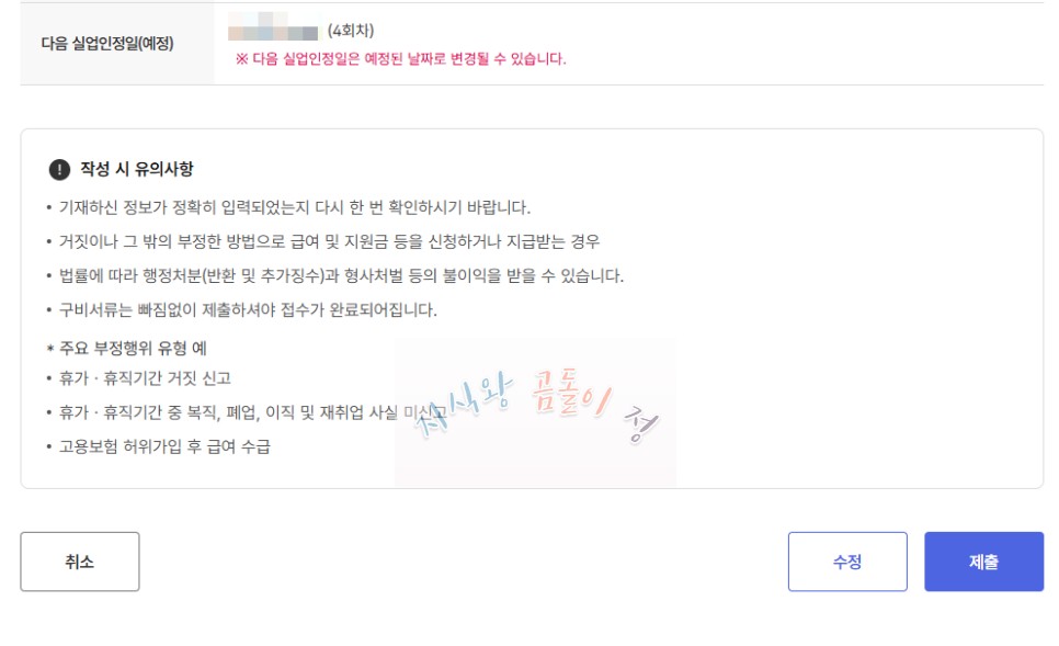 이번에도 실업급여 신청을 무사히 완료했어요. 앞으로도 남은 신청 기간 동안 실업인정을 잘 준비해 두어야겠네요.