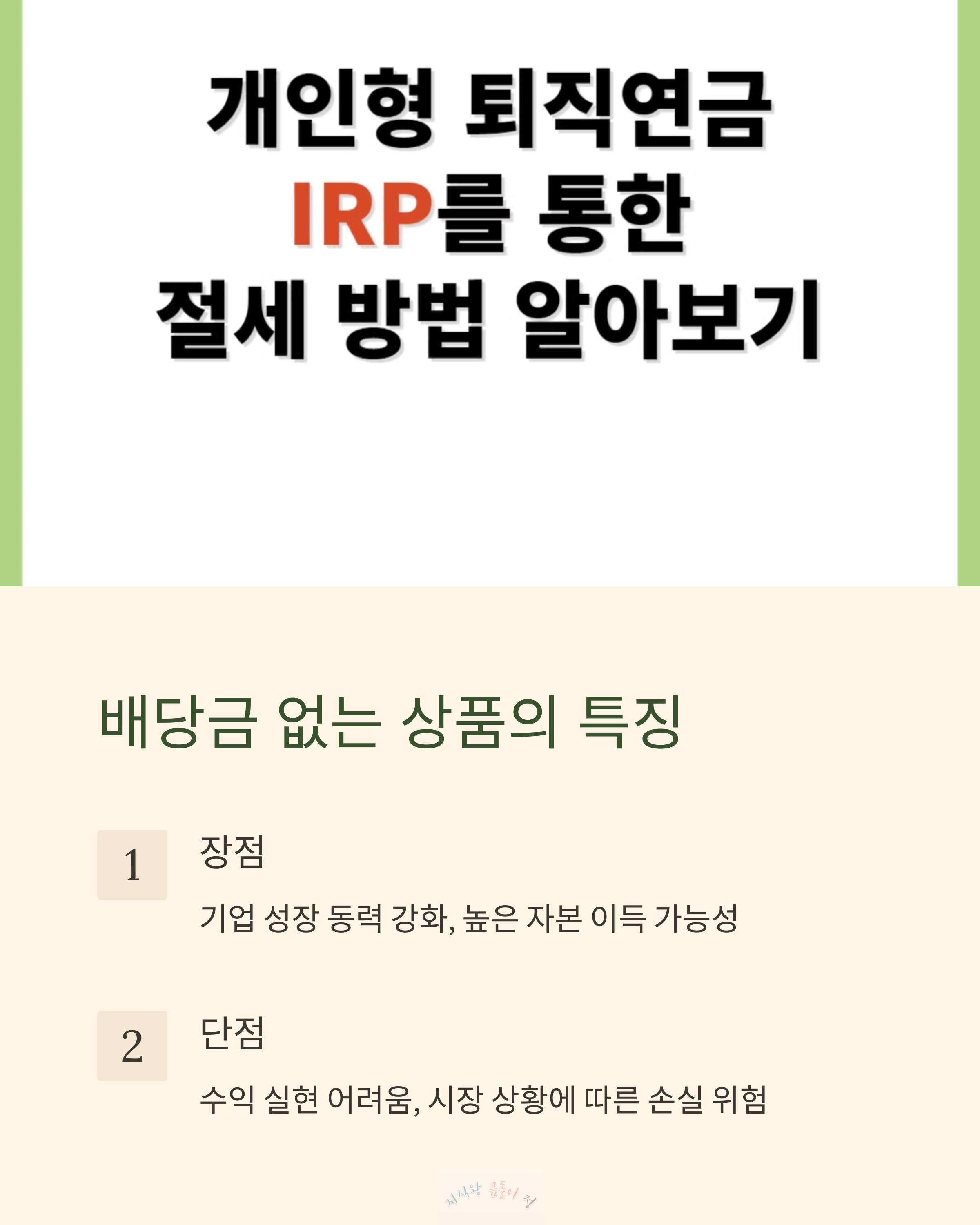 퇴직연금(IRP) 상품을 고를 때 배당금이 있는 상품과 없는 상품 중에서 어떤 것이 유리할지 고민하는 분들이 많습니다.